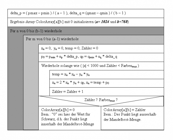 Algorithmus zur Berechnung der Mandelbrot Menge