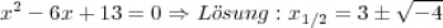 Diese Gleichung ist nicht im reellen Zahlenbereich lösbar, weil sie eine negative Wurzel besitzt! Aus diesem Grunde ist eine imaginäre Zahlendarstellung zur Beschreibung der negativen Wurzel eingeführt worden:
