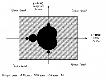 Um die Mandelbrot Figuren zu erzeugen, wird nicht nur ein Punkt betrachtet, sondern ein Fläche: